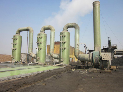 本裝置采用氫氧化鈉溶液為吸收中和液來(lái)凈化廢氣。氣體由離心通風(fēng)機(jī)壓入或吸入進(jìn)風(fēng)段,再向上流動(dòng),至第一級(jí)填料層,與第一級(jí)噴嘴噴出的中和液接觸反應(yīng)。吸收后的廢氣繼續(xù)向上流動(dòng)至第二級(jí)填料層,與第二級(jí)噴嘴噴出的中和液接觸,再次發(fā)生中和反應(yīng),根據(jù)廢氣各項(xiàng)指標(biāo),還可以加裝第三級(jí)填料及噴淋裝置,凈化達(dá)標(biāo)后的氣體通過(guò)除霧器排入大氣中。